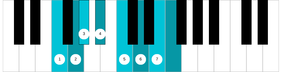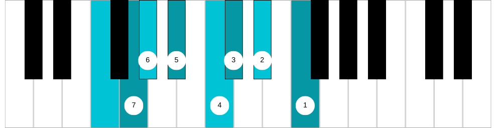 1, 2, ♭3, 4, 5, 6, 7 - ♭7, ♭6, 5, 4, ♭3, 2, 1
