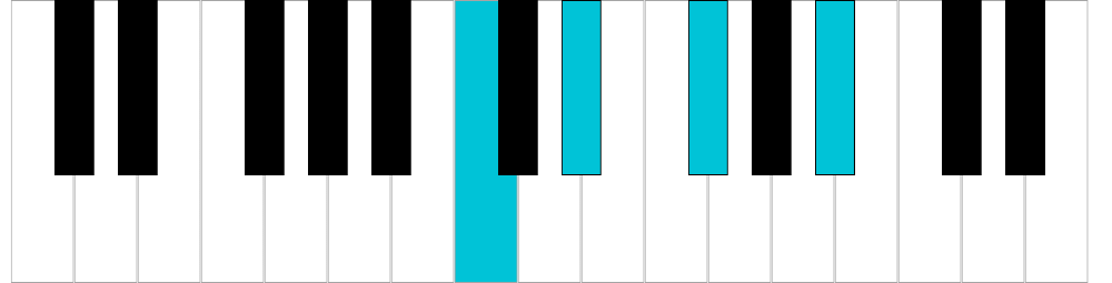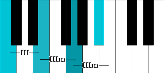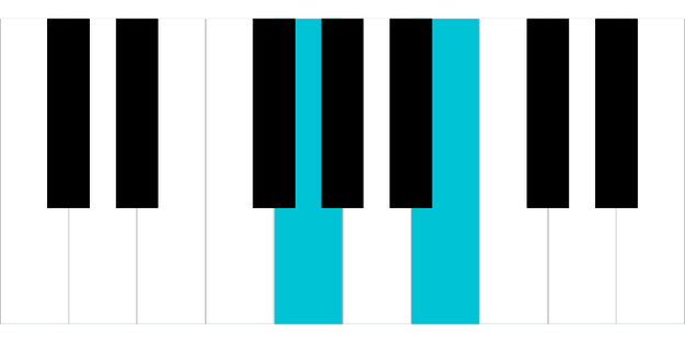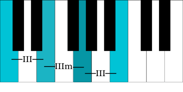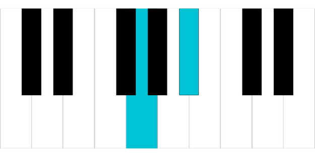 Questo metodo è molto utile se ancora non conosci le scale maggiori, perché ti basta aggiungere solo un intervallo di III che puoi rapidamente calcolare con la distanza dei tasti.