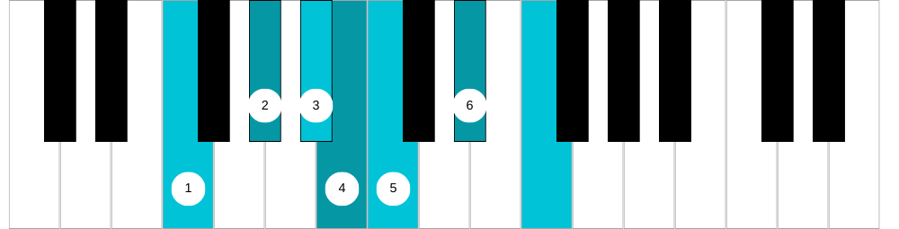 Fa, La♭, Si♭, Do♭, Do, Mi♭