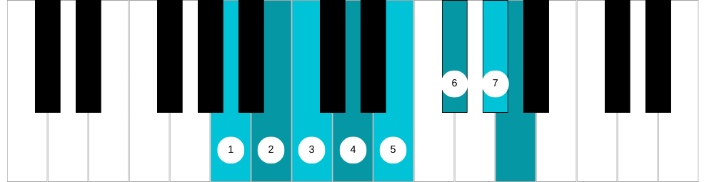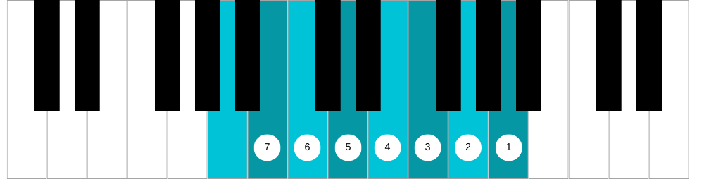 1, 2, ♭3, 4, 5, 6, 7 - ♭7, ♭6, 5, 4, ♭3, 2, 1