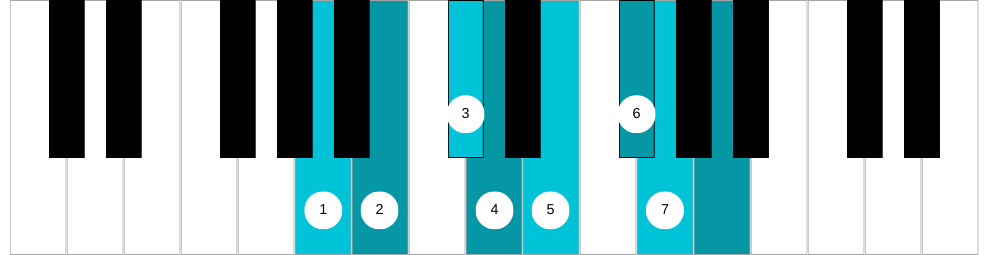 1, 2, 3, 4, 5, 6, ♭7