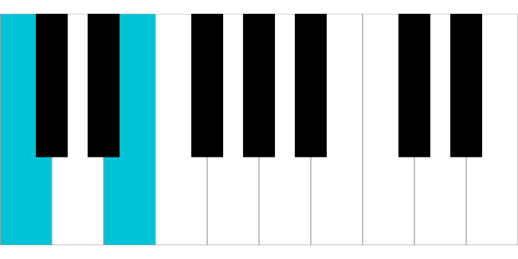 Nella prima coppia, tra il Do e il Mi abbiamo una distanza di 4 tasti. Basta contare e procedere tasto per tasto: