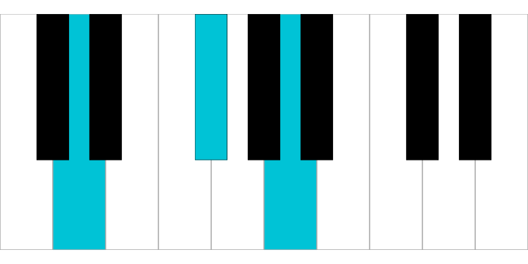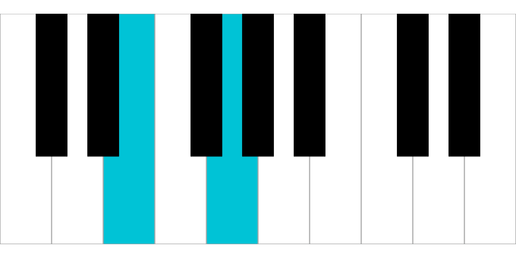 Nella seconda coppia di accordi Mi + Sol, abbiamo invece 3 tasti di distanza: