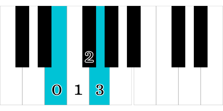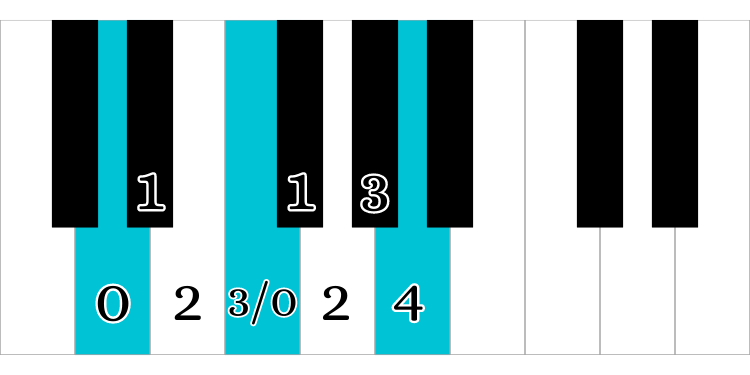 Per scendere utilizza la stessa tecnica, ma raggiungi il Fa con il primo dito. Oltrepassa il pollice con il dito medio per raggiungere il tasto Mi. Continua poi sino a Do con il secondo e primo dito.